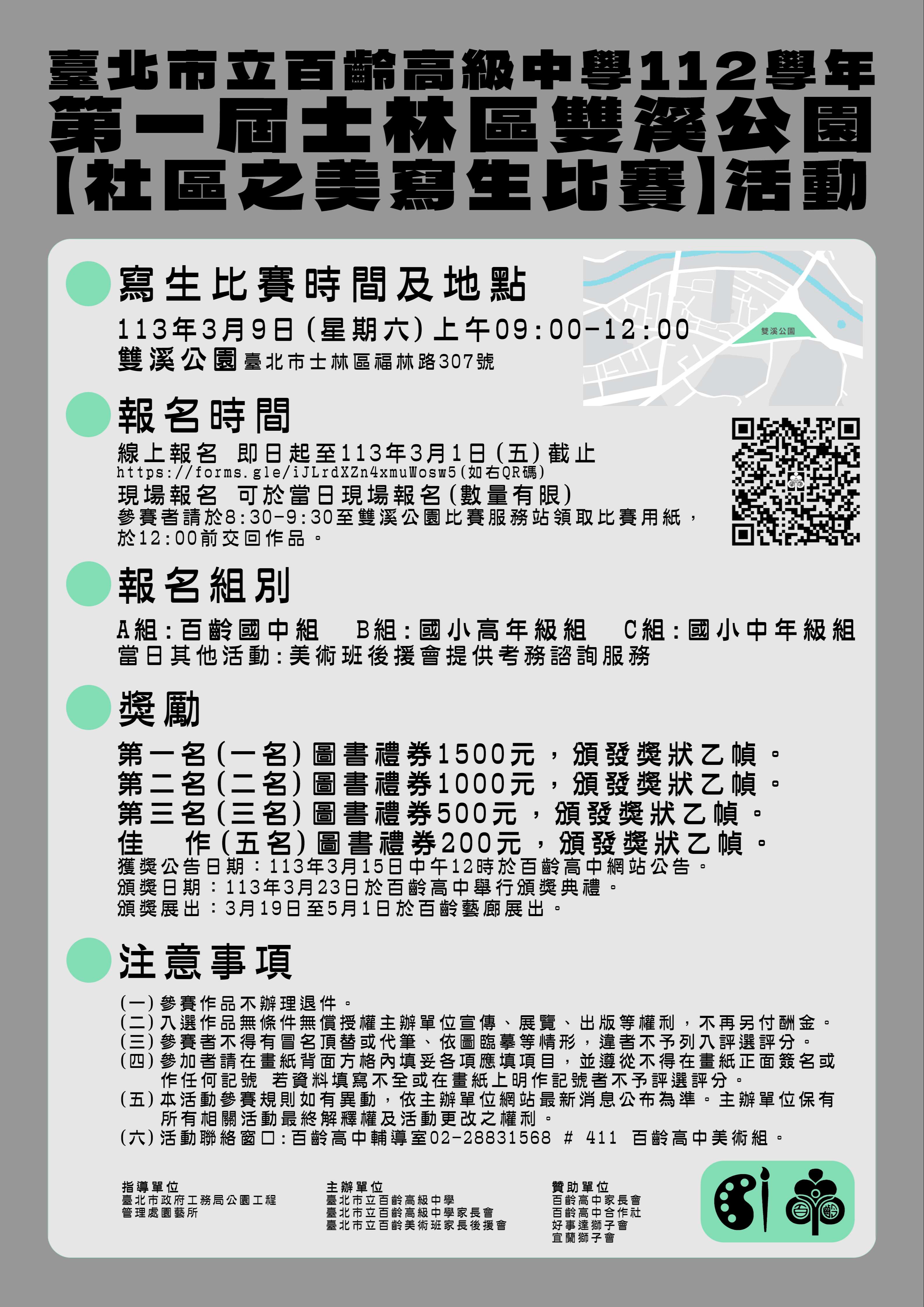 二、比賽地點:雙溪公園內(臺北市士林區福林路 307 號),若遇雨天照常舉行。