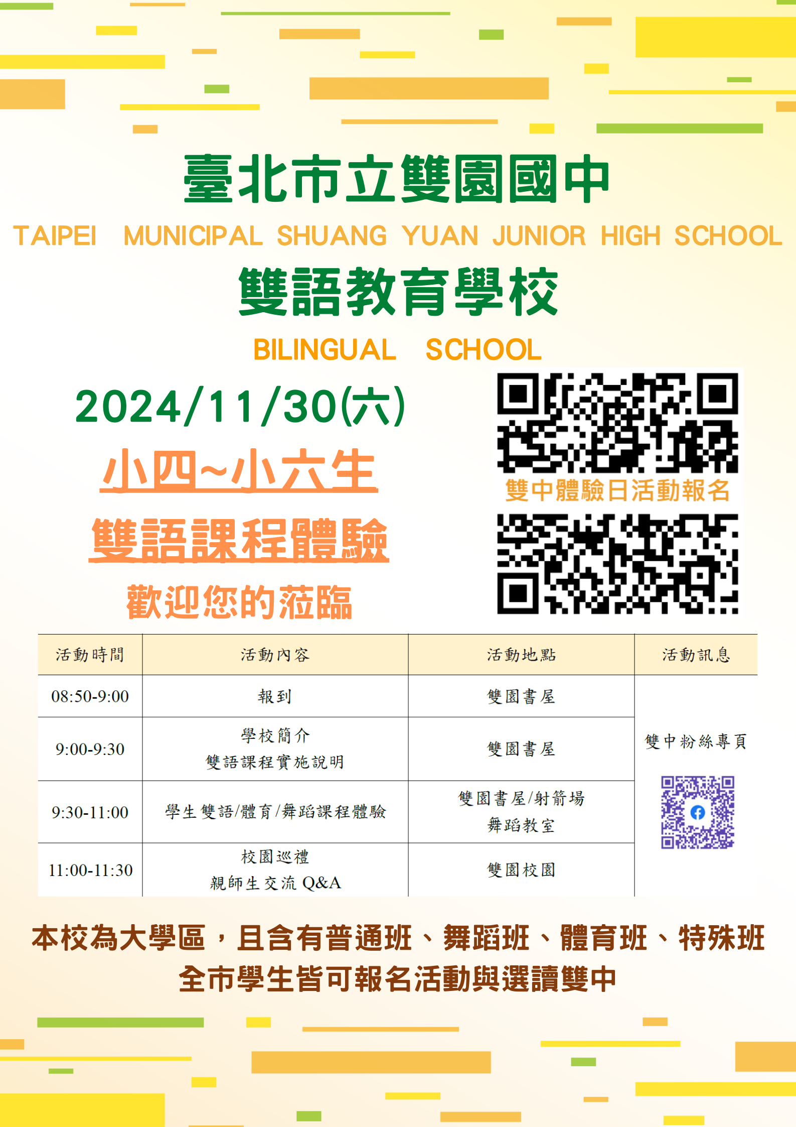 活動地點:雙園國中(臺北市萬華區興義街2號)。