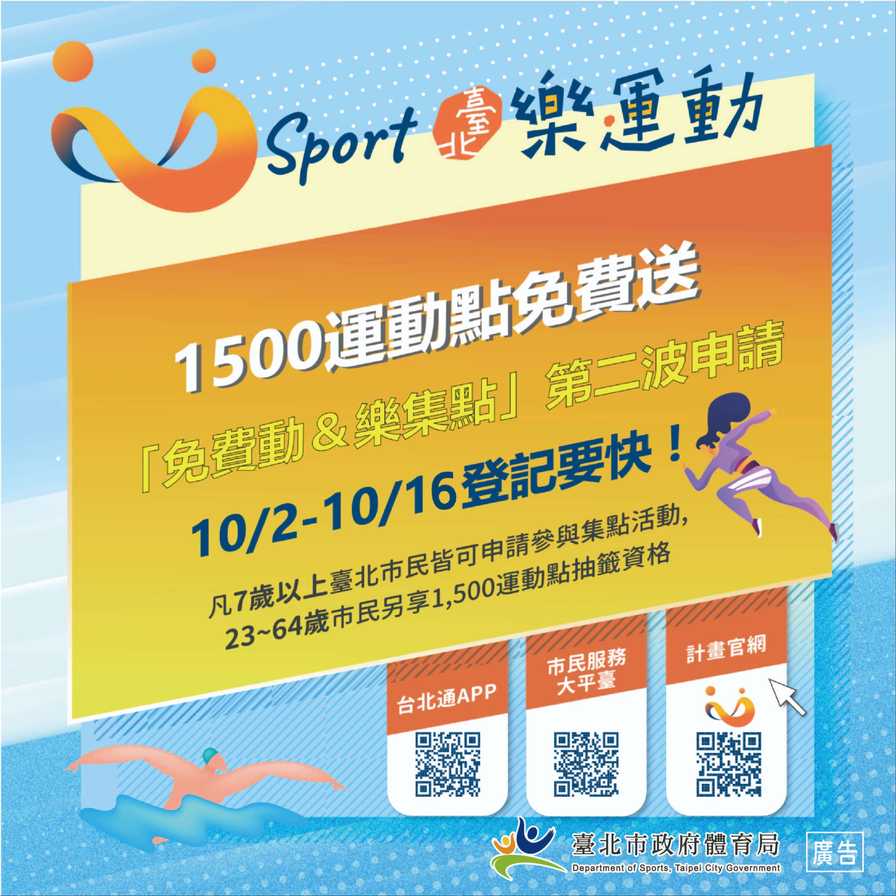 二、活動訊息請見官網或臺北市政府Line官方帳號-體育樂園 。