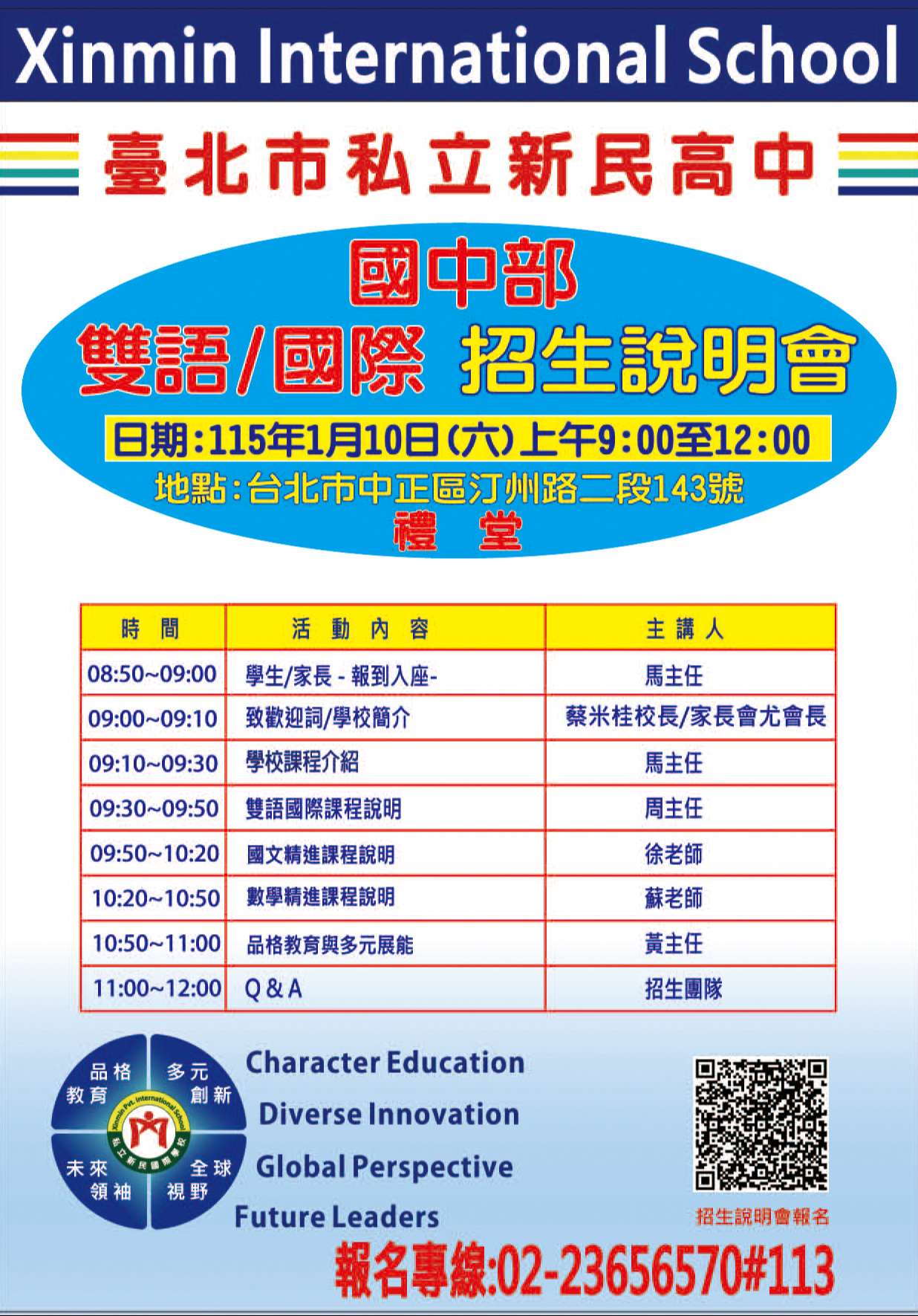 一、本校為協助家長了解本校的教學理念、課程規劃與設計及升學輔導,我們特別舉辦「國中部學校簡介暨課程說明會」。